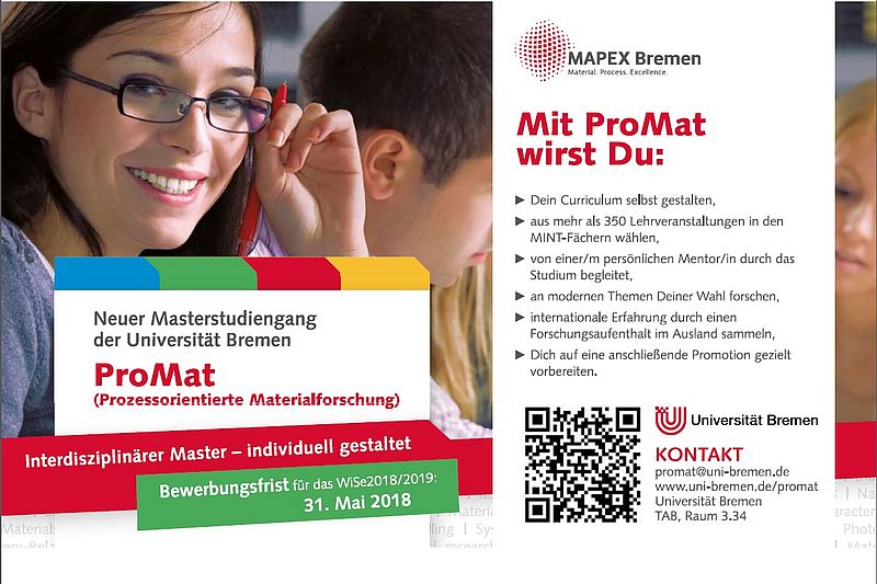 Mehr über diesen neuen Masterstudiengang erfahren Sie hier: www.uni-bremen.de/promat.