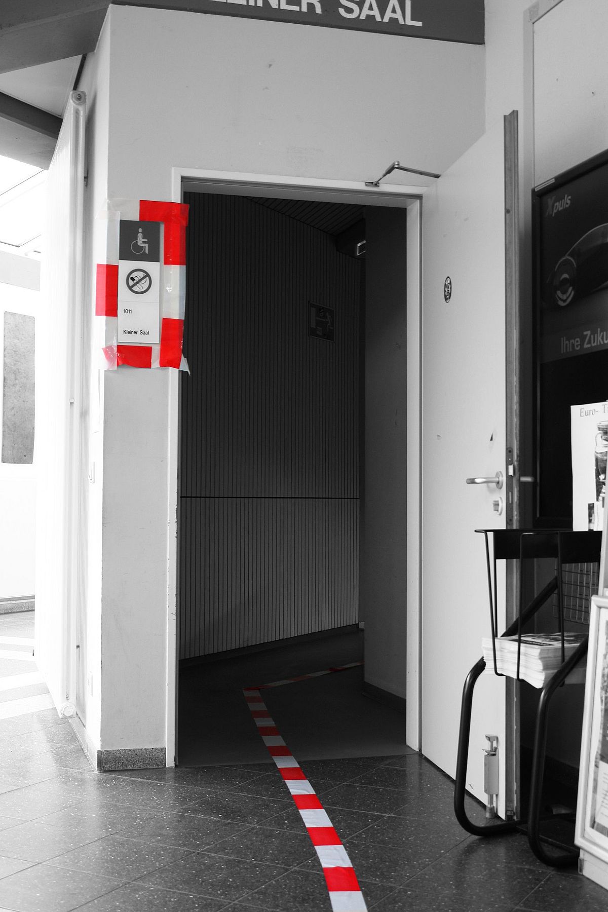 Das Stuhlchaos im Bereich für Rollstuhlfahrer_innen wurde inzwischen gebändigt und der Gefahrenbereich für Menschen mit Sehbeeinträchtigungen im Treppenbereich durch ein Geländer behoben.
