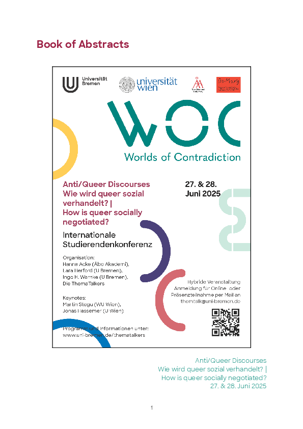 Dateiname: ThT_AntiQueer_Discourses_CfP_DE.pdfÄnderungsdatum: 25.02.2025Anti/Queer Discourses. How is queer socially negotiated?