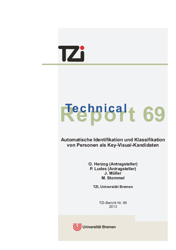 Dateigröße: 704 KBDateiname: 71_TZI-Bericht_Nr._71.pdfÄnderungsdatum: 15.02.2018Automatische Identifikation und Klassifikation von Personen als Key-Visual-Kandidaten