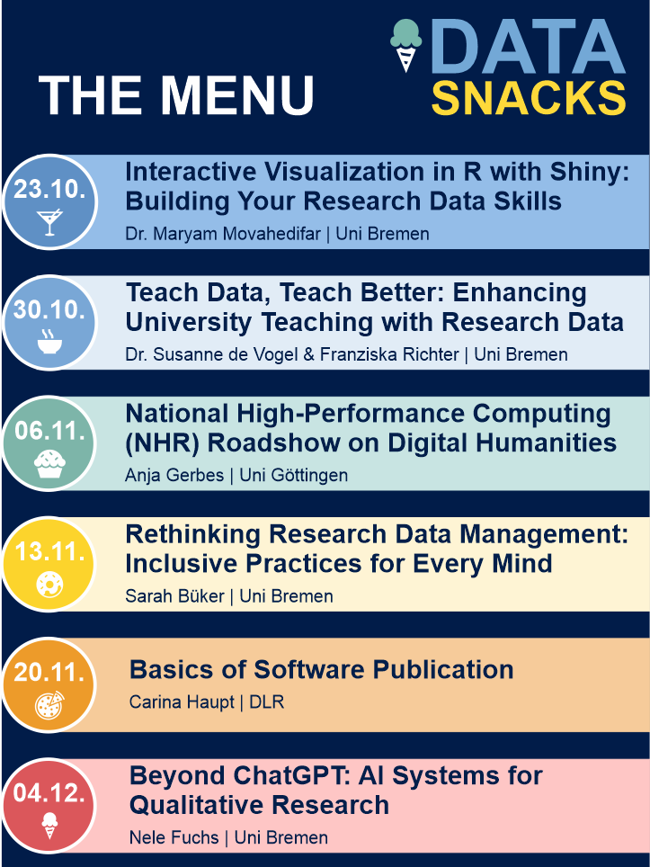 Past sessions are partly available through our Zenodo community: zenodo.org/communities/dsc-unibremen/