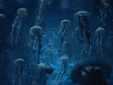 Im frühen Ozean gab es schon Lebewesen, als an Land noch kein Leben existieren konnte. Während die meisten Science-Fiction-Thriller mit intelligenten Lebewesen aus dem Weltall arbeiten, erfand Frank Schätzing eine Schwarmintelligenz im Ozean. Sie nimmt den Kampf mit der Menschheit auf, nachdem diese den Lebensraum Ozean mehr und mehr zerstört.