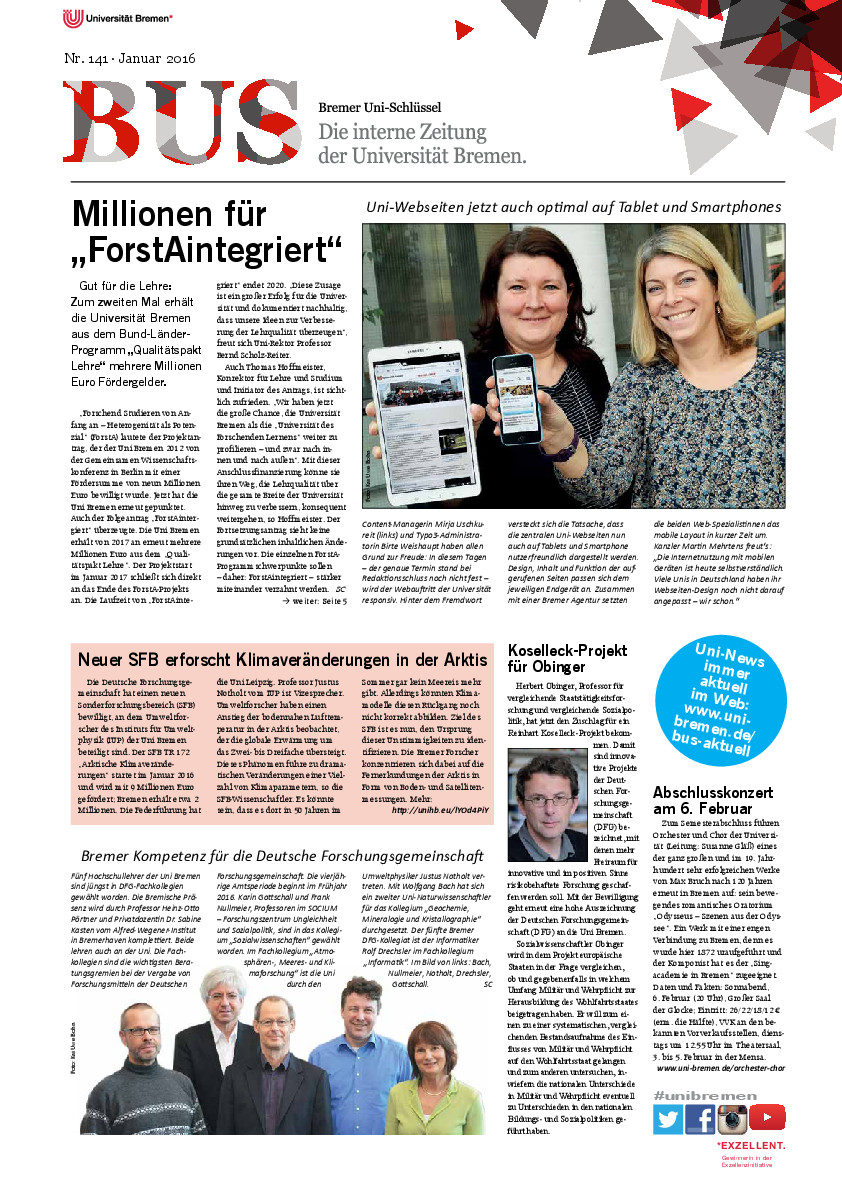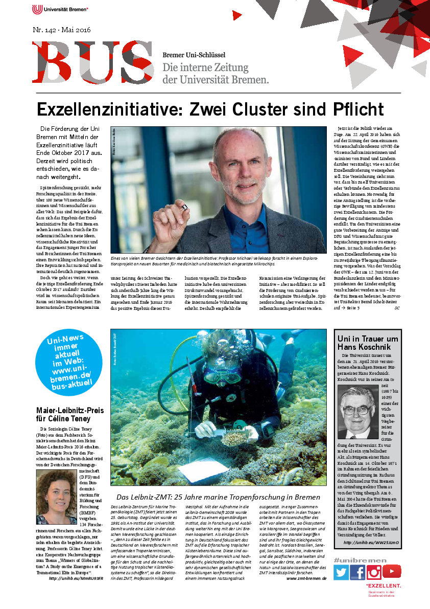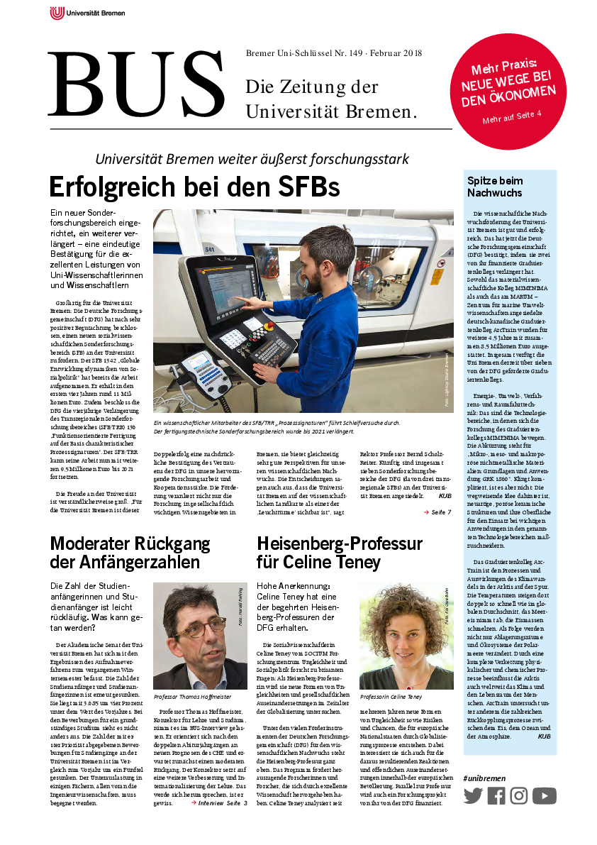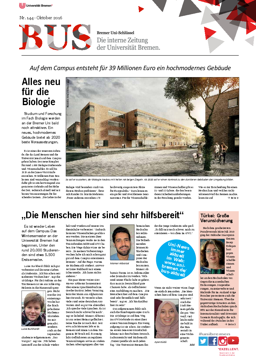 Über den Zeitraum von 30 Jahren war der „Bremer Uni-Schlüssel“ (BUS) die Zeitung der Universität Bremen. Bis 2019 informierte der BUS Studierende und Uni-Angestellte über das Leben und die Aktivitäten auf dem Campus. Dazu zählten zum Beispiel Artikel über Entwicklungen in den Fachbereichen, aus dem Uni-Leben, über Neu- und Umbauten, Schwerpunkte aus Forschung und Lehre sowie Personalien. Der BUS erschien viermal im Jahr. Für die Universität war der BUS ein Forum zum Informationsaustausch und zur Förderung von Diskussionsprozessen. Mit der letzten Ausgabe Nr. 152 vom November 2018 wurde die Zeitung BUS eingestellt.