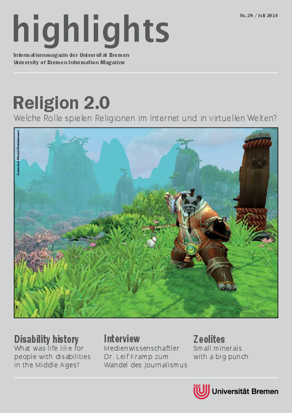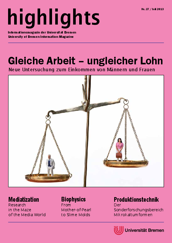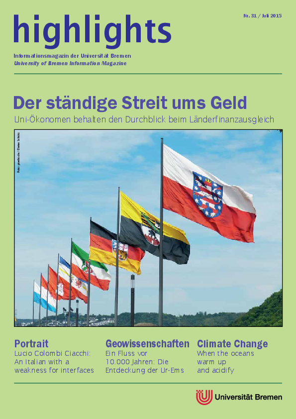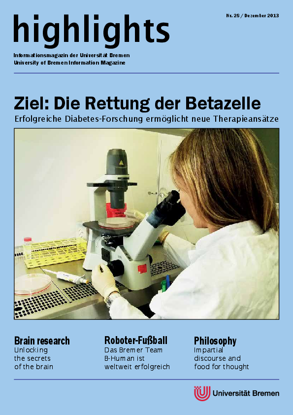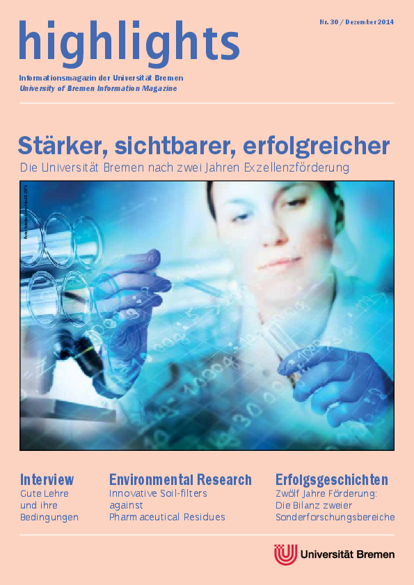 Über 20 Jahre stellte das Forschungsmagazin „highlights“ Forschungsprojekte der Universität Bremen in deutscher und englischer Sprache vor. Um einen möglichst breiten Leser:innenkreis zu erreichen, wurden darin wissenschaftliche Zusammenhänge anschaulich und verständlich geschildert. Kurzmeldungen aus Lehre und Forschung, Personenportraits und Interviews rundeten die Ausgaben ab. Mit der letzten Ausgabe Nr. 36 vom Herbst 2018 wurde das Magazin „highlights“ eingestellt.