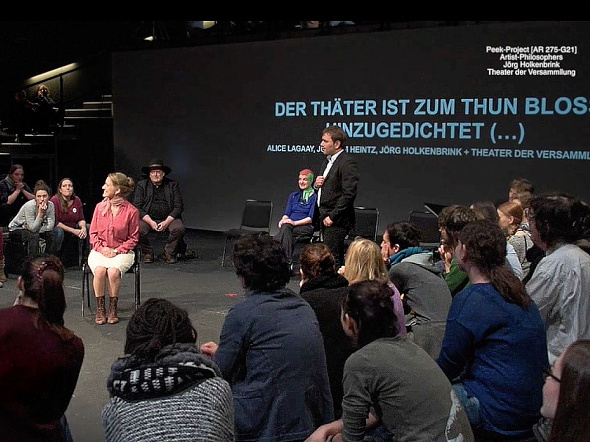Das Theater der Versammlung zwischen Bildung, Wissenschaft und Kunst wurde 1992 gegründet und gilt damit als eines der ersten performativen Forschungstheater der Bundesrepublik. Das Theaterensemble (unter der künstlerischen Leitung von ca.si.an) bildet das Herzstück des Zentrum für Performance Studies und zeichnet sich durch seine einzigartige Struktur im deutschen Kulturraum aus: Es agiert, angeschlossen an den akademischen Betrieb, als eigenständige künstlerische Institution, die wissenschaftliche und gesellschaftspolitische Zusammenhänge mit den Mitteln der performativen Künste befragt und interdisziplinäre Dialogketten innerhalb und außerhalb der Universität initiiert. So wandert das Ensemble genauso durch verschiedene Forschungs- und Fachbereiche, wie an theaterferne Orte, von Bestattungsunternehmen über Krankenhäuser bis hin zu Leerständen und Kultureinrichtungen. Genauso wie alle Produktionen kontextspezifisch entwickelt werden, kann das Ensemble auch aus dem situativ adaptierbaren Repertoire schöpfen. Alle Aktivitäten versteht das Theater der Versammlung als performative Versuchsanordnung, in denen, gemeinsam mit dem Publikum, zugleich die Versammlung als Form untersucht und gestaltet wird.