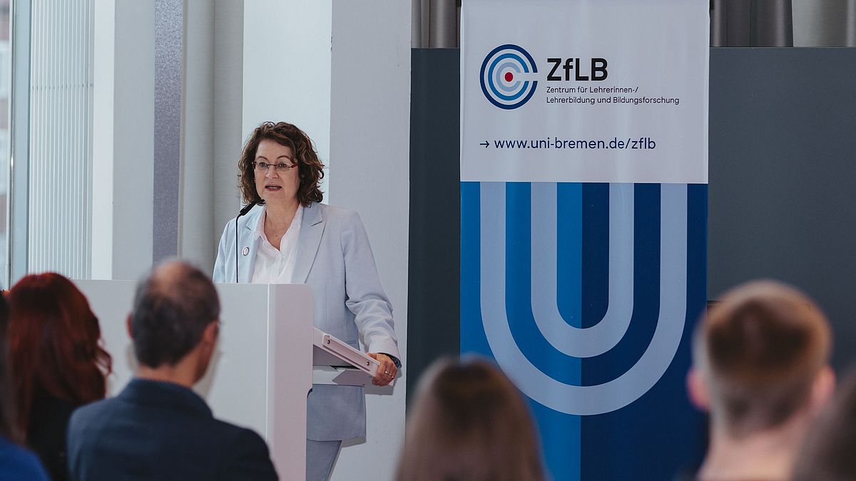Professorin Maren Petersen, Konrektorin für Lehre und Studium an der Universität Bremen und selbst in der Lehramtsausbildung tätig, ermutigte die Absolvent:innen, sich selbst treu zu bleiben und die Freude am Lernen zu behalten:„Allen Absolvent:innen wünsche ich viel Freude, Inspiration und Zuversicht im Beruf. Sie haben im Studium schon sehr viel geschafft, und zugleich liegt im Referendariat und darüber hinaus noch vieles vor Ihnen: neue Erfahrungen im Unterricht, viele Begegnungen mit jungen Menschen und jede Menge Chancen, selber etwas zu lernen. Alles Gute für Ihren weiteren Weg!“
