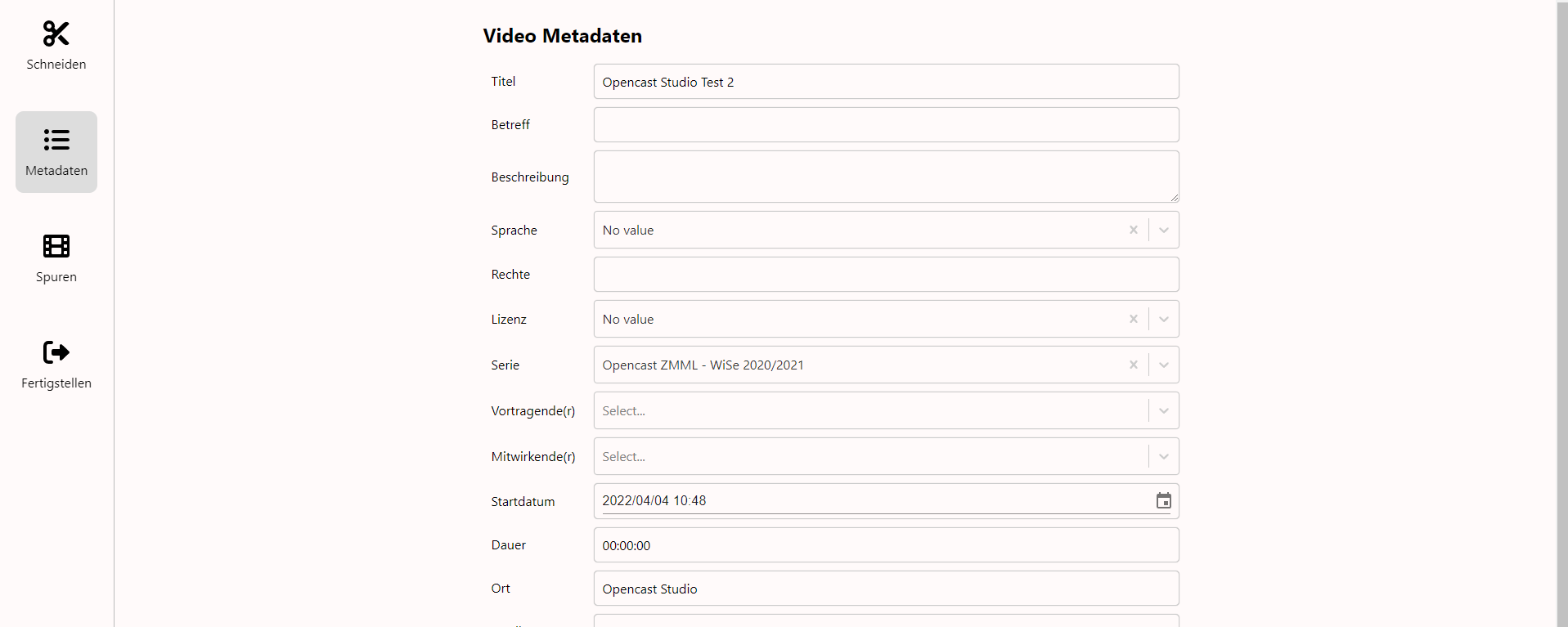 Hier können Metadaten des Videos bearbeitet werden, Sie können hier etwa den Titel des Videos ändern.